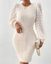 SPECIFICATIONS Style: Elegant Material: Cotton Blends Dress Type: Shift dress Dress Length: Knee Length Neckline: Round Neck Pattern Type: Solid Color Sleeve Type: Raglan sleeve Sleeve Length: Long Sleeve Details: Lace Fit Type: Regular Season: Fall, Winter Occasion: Daily, Vacation Package Includes: 1 x Dress SIZE TABLE Size Bust Length ...
