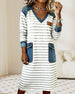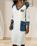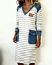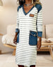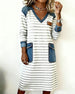 SPECIFICATIONS Style: Casual Material: Denim,Knit Dress Type: Shift dress Dress Length: Midi Neckline: V neck_V Pattern Type: Striped Sleeve Type: Raglan sleeve Sleeve Length: Long Sleeve Details: Patchwork,Pocket Fit Type: Regular Season: Fall,Winter Occasion: Daily Package Includes: 1 x Dress SIZE TABLE Size Bust Length CM INCH C...