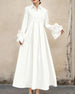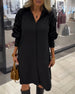 SPECIFICATIONS Style: Casual Material: Cotton Blends Dress Type: Shirt Dress Length: Maxi Neckline: Shirt Collar Pattern Type: Solid Color Sleeve Type: Petal Sleeve Sleeve Length: Long Sleeve Details: Shirred Fit Type: Regular Season: Spring,Fall Occasion: Daily Package Includes: 1 x Dress SIZE TABLE Size Bust Length CM INCH CM INCH S...
