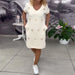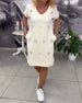 SPECIFICATIONS Style: Casual Material: Cotton Blends Dress Type: Shift dress Dress Length: Knee Length Neckline: V neck_V Pattern Type: Solid Color Sleeve Type: Regular sleeve Sleeve Length: Short Sleeve Details: Pocket Fit Type: Regular Season: Spring,Summer Occasion: Daily Package Includes: 1 x Dress SIZE TABLE Size Bust Length C...