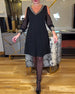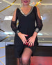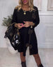 SPECIFICATIONS Style: Elegant Material: A: 95% Cotton 5% Spandex; B: 100% Polyester Dress Type: A-Line Dress Length: Knee Length Neckline: V neck_V Pattern Type: Sequin,Solid Color Sleeve Length: Long Sleeve Details: Patchwork,Hollow Out Fit Type: Regular Season: Fall,Winter Occasion: Daily Package Includes: 1 x Dress SIZE TABLE S...