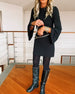 SPECIFICATIONS Style: Chic Material: 50% Pu 50% Polyester Dress Type: Bodycon Dress Length: Knee Length Neckline: Lapel Pattern Type: Solid Color Sleeve Type: Regular sleeve Sleeve Length: Long Sleeve Details: Zipper Fit Type: Regular Season: Fall,Winter Occasion: Daily Package Includes: 1 x Dress SIZE TABLE Size Bust Length Slee...