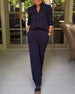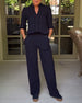 SPECIFICATIONS Style: Chic Top Type: Blouses Category: Sets Material: 60% Polyester, 40% Cool Silk Cotton Pattern Type: Solid Color Neckline: V neck_V Sleeve Type: Regular sleeve Sleeve Length: 3/4 Sleeve Pants Type: Conventional Pants Length: Long Waist Type: Mid Waist Fit Type: Regular Season: Spring,Fall Details: Pocket Occasion: Daily Pac...