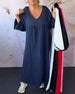 SPECIFICATIONS Style: Casual Material: 100% Cotton Dress Type: A-Line Dress Length: Maxi Neckline: V neck_V Pattern Type: Solid Color Sleeve Type: Lantern Sleeve Sleeve Length: 3/4 Sleeve Fit Type: Regular Season: Spring,Summer Occasion: Daily Package Includes: 1 x Dress SIZE TABLE Size Bust Length Sleeves Shoulder CM INCH CM I...