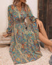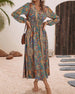 SPECIFICATIONS Style: Vacation, Elegant Material: Spandex, Polyester Dress Type: A-Line Dress Length: Maxi Neckline: V neck_V Pattern Type: Paisley Sleeve Type: Lantern Sleeve Sleeve Length: Long Sleeve Details: Shirred Fit Type: Regular Season: Spring, Summer, Fall Occasion: Daily, Vacation Package Includes: 1 x Dress SIZE TABLE ...