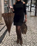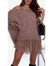 Off-Shoulder Loose Sweater & Lace Hem Dress