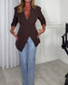 SPECIFICATIONS Category: Blazers Style: Chic Material: Cotton Blends Occasion: Daily,Work Neckline: V neck_V Pattern Type: Solid color Sleeve Type: Regular sleeve Sleeve Length: Long Sleeve Fit Type: Regular Season: Fall,Winter Details: Buttons,Irregular Package Includes: 1 x Blazer SIZE TABLE Size Bust Length CM INCH CM INCH S 97 3...