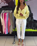 SPECIFICATIONS Category: Pullovers Style: Casual Material: Knit Neckline: V neck_V Pattern Type: Solid color Sleeve Type: Regular sleeve Sleeve Length: Long Sleeve Details: Buckle,Hollow Out Fit Type: Regular Occasion: Daily Season: Spring,Summer,Fall Package Includes: 1 x Pullover SIZE TABLE Size Bust Length CM INCH CM INCH S 97 ...