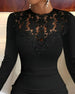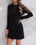 SPECIFICATIONS Style: Elegant Material: Cotton Blends, Lace Dress Type: Shift dress Dress Length: Knee Length Neckline: Round Neck Pattern Type: Solid Color Sleeve Type: Regular sleeve Sleeve Length: Long Sleeve Details: Patchwork, Shirred Fit Type: Regular Season: Spring, Fall, Winter Occasion: Daily Package Includes: 1 x Dress SIZE TABLE...