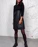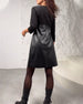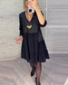 SPECIFICATIONS Style: Casual Material: 5% Spandex, 95% Polyester Dress Type: A-Line Dress Length: Knee Length Neckline: V neck_V Pattern Type: Solid Color Sleeve Type: Regular sleeve Sleeve Length: Nine Points Sleeve Details: Patchwork Fit Type: Regular Season: Fall, Winter Occasion: Daily Package Includes: 1 x Dress SIZE TABLE ...