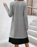 SPECIFICATIONS Style: Casual Material: Cotton Blends Dress Type: Shift dress Dress Length: Midi Neckline: Round Neck Pattern Type: Solid Color Sleeve Type: Regular sleeve Sleeve Length: Long Sleeve Details: Patchwork, Drawstring Fit Type: Regular Season: Spring, Fall, Winter Occasion: Daily Package Includes: 1 x Dress SIZE TABLE ...