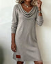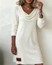SPECIFICATIONS Style: Casual Material: Cotton Blends Dress Type: Shift dress Dress Length: Knee Length Neckline: Cowl Neck Pattern Type: Solid Color Sleeve Type: Regular sleeve Sleeve Length: Long Sleeve Fit Type: Regular Season: Fall,Winter Occasion: Daily Package Includes: 1 x Dress SIZE TABLE Size Bust Length CM INCH CM INCH S...