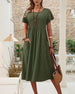 SPECIFICATIONS Style: Casual Material: Cotton and linen Dress Type: A-Line Dress Length: Midi Neckline: Round Neck Pattern Type: Solid Color Sleeve Type: Regular sleeve Sleeve Length: Short Sleeve Details: Shirred Fit Type: Regular Season: Spring,Summer Occasion: Daily Package Includes: 1 x Dress SIZE TABLE Size Bust Length CM INCH CM I...