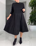 SPECIFICATIONS Style: Casual Material: 94% Polyester, 6% Spandex Dress Type: A-Line Dress Length: Knee Length Neckline: Round Neck Pattern Type: Solid Color Sleeve Type: Regular sleeve Sleeve Length: Long Sleeve Details: Shirred Fit Type: Regular Season: Fall, Winter Occasion: Daily, Vacation Package Includes: 1 x Dress SIZE TABLE Size B...