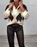 Preppy Style Diamond-Patterned Shirt Collar Pullover