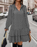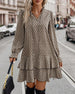 SPECIFICATIONS Style: Casual Material: Spandex, Polyester Dress Type: A-Line Dress Length: Knee Length Neckline: V neck_V Pattern Type: Print Sleeve Type: Regular sleeve Sleeve Length: Long Sleeve Details: Drawstring Fit Type: Regular Season: Spring, Summer Occasion: Daily Package Includes: 1 x Dress SIZE TABLE Size Bust Length S...
