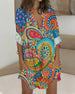 SPECIFICATIONS Style: Casual Material: Cotton Blends Dress Type: Shift dress Dress Length: Knee Length Neckline: Round Neck Pattern Type: Print Sleeve Type: Bat sleeve Sleeve Length: 3/4 Sleeve Fit Type: Regular Season: Spring,Summer Occasion: Daily Package Includes: 1 x Dress SIZE TABLE Size Bust Length CM INCH CM INCH S 97 38.1...