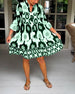 SPECIFICATIONS Style: Casual Material: 5% Spandex, 95% Polyester Dress Type: A-Line Dress Length: Knee Length Neckline: V neck_V Pattern Type: Print Sleeve Type: Flare Sleeve Sleeve Length: 3/4 Sleeve Fit Type: Regular Season: Spring, Summer Occasion: Daily Package Includes: 1 x Dress SIZE TABLE Size Bust Length Sleeve le...