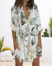 SPECIFICATIONS Style: Casual Material: Cotton Blends Dress Type: A-Line Dress Length: Midi Neckline: Lapel Pattern Type: Print Sleeve Type: Regular sleeve Sleeve Length: 3/4 Sleeve Details: Lace Up, Buttons, Slit Fit Type: Regular Season: Summer Occasion: Daily, Vacation Package Includes: 1 x Dress (With Belt) SIZE TABLE Size Bust L...