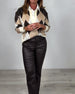 SPECIFICATIONS Top Type: Blouses Style: Elegant Material: Cotton Blends Occasion: Daily Neckline: V neck_V Sleeve Type: Flare Sleeve Sleeve Length: 3/4 Sleeve Fit Type: Regular Season: Spring, Summer, Fall Details: Patchwork, Buttons Package Includes: 1 x Blouse SIZE TABLE Size Bust Length CM INCH CM INCH S 95 37.40 68 2...