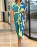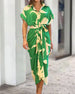 SPECIFICATIONS Style: Casual Material: Cotton Blends Dress Type: Shirt Dress Length: Maxi Neckline: Shirt Collar Pattern Type: Print Sleeve Type: Raglan sleeve Sleeve Length: Short Sleeve Details: Lace Up, Buttons Fit Type: Regular Season: Spring, Summer, Fall Occasion: Daily Package Includes: 1 x Dress SIZE TABLE Size Bust L...