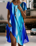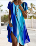SPECIFICATIONS Style: Casual Material: Cotton Blends Dress Type: Shift dress Dress Length: Knee Length Neckline: Round Neck Pattern Type: Tie Dye Sleeve Type: Puff Sleeve Sleeve Length: Short Sleeve Fit Type: Regular Season: Spring,Summer Occasion: Daily Package Includes: 1 x Dress SIZE TABLE Size Bust Length CM INCH CM INCH S 97...