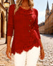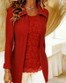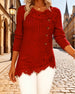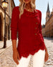 Ribbed Lace Patchwork Long-Sleeved Top
