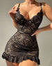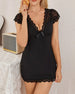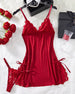 SPECIFICATIONS Style: Sexy Material: Polyester Dress Type: A-Line Dress Length: Above-knee Neckline: V neck_V Pattern Type: Solid Color Sleeve Type: Regular sleeve Sleeve Length: Sleeveless Details: Patchwork,Lace Fit Type: Skinny Season: Spring,Summer Package Includes: 1 x Sleep Dress SIZE TABLE Size Under bust Length S 66 68 M 70 ...