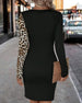 Sexy Deep V-Neck Leopard Print Patchwork Dress