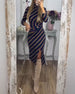 SPECIFICATIONS Style: Chic, Sexy Material: Cotton Blends Dress Type: Bodycon Dress Length: Midi Neckline: High Neck Pattern Type: Striped Sleeve Type: Regular sleeve Sleeve Length: Long Sleeve Details: Shirred Fit Type: Skinny Season: Fall, Winter Occasion: Daily Package Includes: 1 x Dress SIZE TABLE Size Bust Length CM INCH CM INCH ...