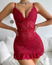 SPECIFICATIONS Style: Elegant,Sexy Material: Lace,Satin Dress Type: Bodycon Dress Length: Above-knee Neckline: V neck_V Pattern Type: Solid Color Sleeve Length: Sleeveless Details: Patchwork,Hollow Out Fit Type: Skinny Season: Spring,Summer,Fall,Winter Occasion: Daily Package Includes: 1 x Dress SIZE TABLE Size Bust Length CM INCH CM IN...