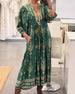 SPECIFICATIONS Style: Casual Material: Cotton Blends Dress Type: Shift dress Dress Length: Maxi Neckline: V neck_V Pattern Type: Print Sleeve Length: 3/4 Sleeve Details: Pocket,Shirred Fit Type: Regular Season: Spring,Fall,Winter Occasion: Daily Package Includes: 1 x Dress SIZE TABLE Size Bust Length CM INCH CM INCH S 97 38.19 132 ...