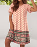 SPECIFICATIONS Style: Casual Material: Cotton Blends Dress Type: Shift dress Dress Length: Knee Length Neckline: Round Neck Pattern Type: Print Sleeve Type: Regular sleeve Sleeve Length: Short Sleeve Details: Shirred Fit Type: Regular Season: Spring,Summer Occasion: Daily Package Includes: 1 x Dress SIZE TABLE Size Bust Length CM I...