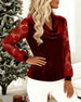 Solid Color Long-Sleeved Velvet Patchwork Top