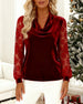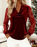SPECIFICATIONS Top Type: Tops Style: Casual Material: Lace,Velvet Occasion: Daily Neckline: Draped Collar Pattern Type: Solid Color Sleeve Type: Regular sleeve Sleeve Length: Long Sleeve Fit Type: Regular Season: Fall,Winter Package Includes: 1 x Top SIZE TABLE Size Bust Length CM INCH CM INCH S 92 36.22 65 25.59 M 96 37.8 66.5 26.1...