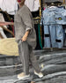 SPECIFICATIONS Style: Casual Top Type: Shirt Category: Sets Material: Cotton Blends Neckline: Stand Collar Sleeve Type: Regular sleeve Sleeve Length: 3/4 Sleeve Pants Type: Straight Leg Pants Length: Long Waist Type: High Waist Fit Type: Regular Season: Spring,Summer Details: Patchwork,Pocket Occasion: Daily Package Includes: 1 x Shirt, 1 x Pa...