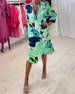 Stand Collar Three-Quarter Sleeves Digital Print Dress