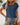 Fake Denim Irregular Print Blouse