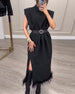 SPECIFICATIONS Style: Elegant, Party Material: Cotton Blends Dress Type: A-Line Dress Length: Midi Neckline: Stand Collar Pattern Type: Solid Color Sleeve Length: Sleeveless Details: Patchwork, Slit Fit Type: Regular Season: Spring, Summer, Fall Occasion: Daily, Party Package Includes: 1 x Dress SIZE TABLE Size Bust Length CM...