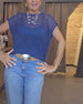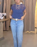 Denim Patchwork Turn-Down Collar T-Shirt