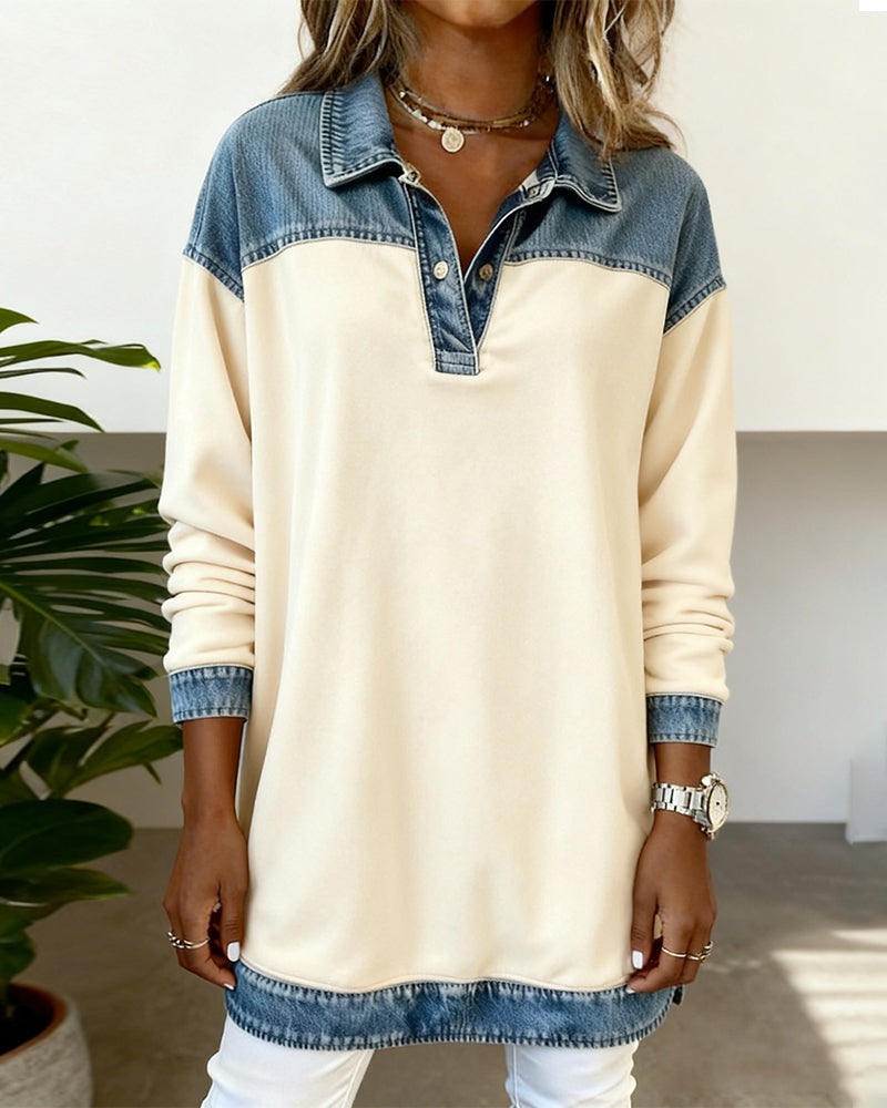 NEW Icon1 Long-Sleeved Lapel Denim Patchwork Shirt