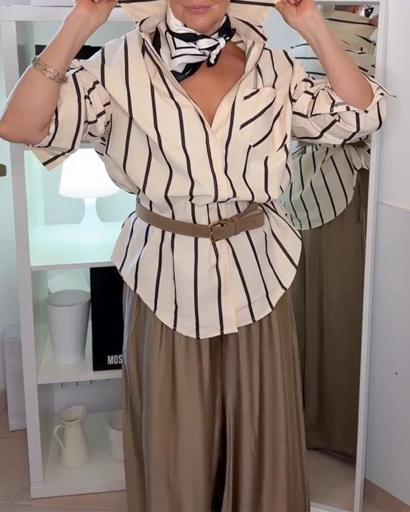 NEW Icon1 Vertical Stripe Print Lapel Shirt