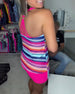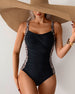 Slimming Suspender Striped Swimsuit