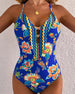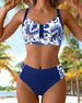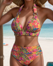 Wide-Neck Halter Floral Two-Piece Swimsuit