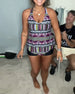 Printed Suspender Boxer Swimsuit