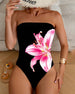 Strapless Floral Print One-Piece Swimsuit