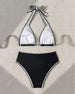 SPECIFICATIONS Style: Vacation Material: 15% Spandex,85% Polyester Occasion: Vacation Neckline: Halter Pattern Type: Color Block Sleeve Length: Sleeveless Top Type: Bikini Bra Type: Triangle Bottom Type: Natural Fit Type: Skinny Details: Backless,Lace Up Package Includes: 1 x Bikini SIZE TABLE Size Bust Waist Hip Under bust CM INCH CM INCH...