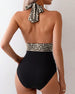 Printed Contrast Halterneck One-Piece Swimsuit