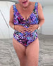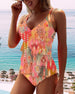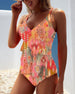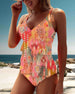 Printed suspenders ruffle patchwork tankini
