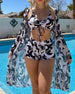 Cover Up Printed Bikini Three-Piece Swimsuit